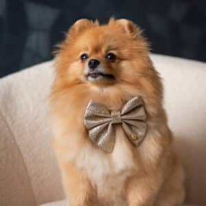 The bow has a velcro strap so you can attach the bow around any harness or collar.